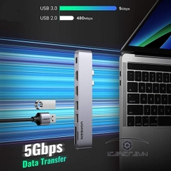Bộ chuyển đổi USB Type C Ugreen 80548 hỗ trợ 2 cổng USB 3.0 truyền dữ liệu lên tới 5Gbps, cho phép bạn kết nối phím, chuột, bộ điều khiển USB, ổ đĩa gắn ngoài…