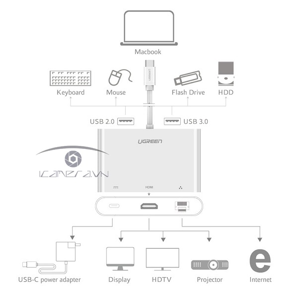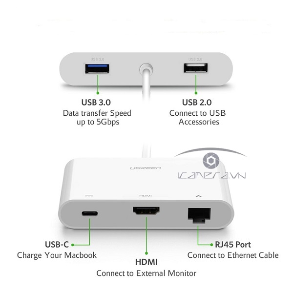 Hub USB Type C Ugreen 30440 là thiết bị giúp bạn mở rộng thêm cổng HDMI, USB 2.0, LAN 10/100Mbps, sạc PD USB C rất tiện lợi cho những máy có ít cổng giao tiếp.