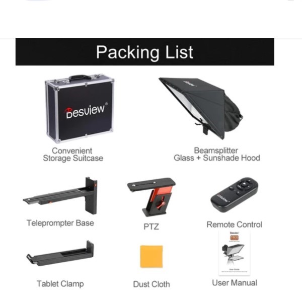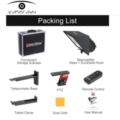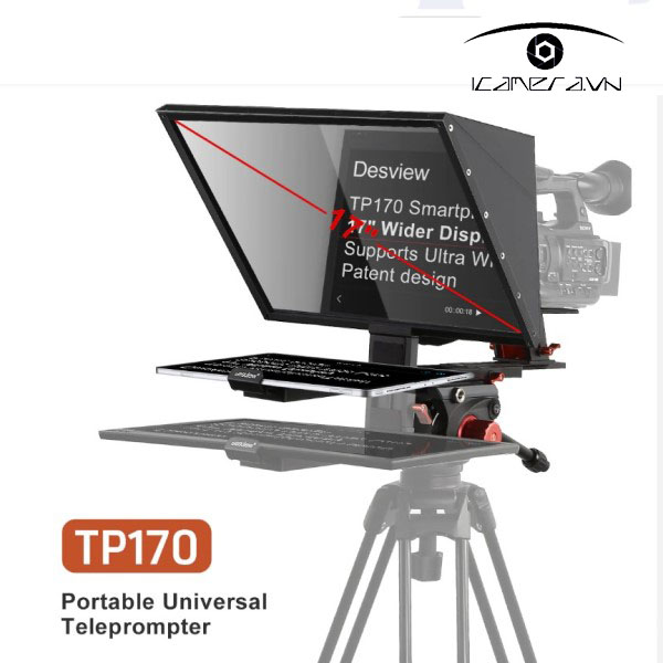 Máy nhắc chữ Telepromter Desview Bestview TP170 tương thích với hầu hết các thiết bị như máy ảnh DSLR, camera, ipad và smartphone.Desview Bestview TP170 có kích thước tấm kính 17 inch lớn hơn giúp phần chữ phản chiếu to rõ ràng hơn, chất lượng kính quang phổ tốt hơn giúp phần thông tin chữ hiển thị rõ ràng hơn ngay cả trong môi trường nhiều ánh sáng.Desview Bestview TP170 giúp MC không phải phân tâm về nội dung nói chuyện, không phải học thuộc nội dung, rất tự tin khi nói nhờ đó việc quay hình rất tự nhiên.
