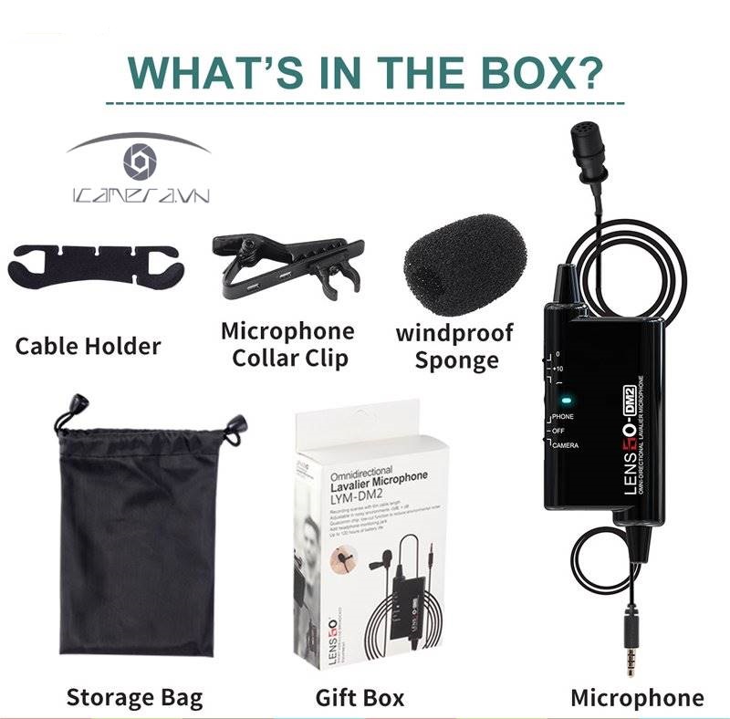 Micro Thu Âm Cài Áo LENSGO LYM-DM2 LENSGO LYM-DM2 là một micrô thu âm chuyên nghiệp cho người dùng Vlog, phù hợp với nhiều loại thiết bị ghi âm nói chung: máy quay phim, DSLR, Smartphone,...