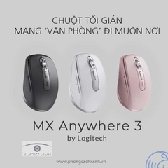 Mouse Logitech MX Anywhere 3 có tính linh hoạt cao nhất với hiệu suất đáng nể. Chuột nhỏ gọn được thiết kế để làm việc di động - từ văn phòng tại nhà, đến quán cà phê, phòng chờ sân bay.