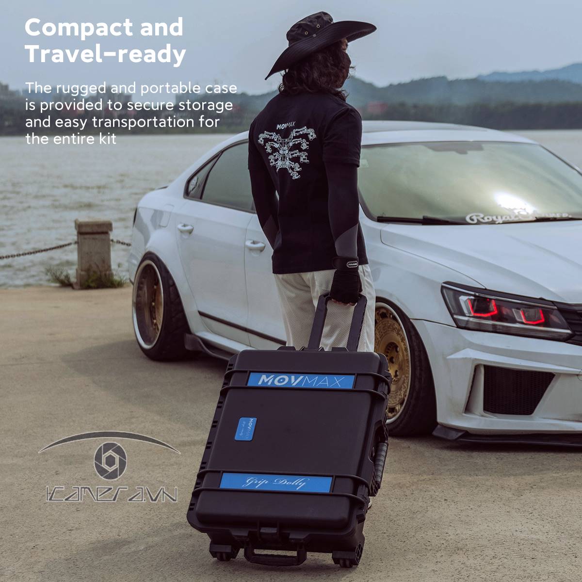 Đạt được những cảnh quay dolly mượt mà với giàn máy quay phim nặng bằng cách sử dụng Bộ MOVMAX Grip Dolly Pro này . Hệ thống bao gồm một tấm dolly phẳng có bánh xe, nhiều bộ chuyển đổi cho đầu chân máy, giá đỡ giữa và bên, cũng như các phụ kiện lắp ráp để lắp ráp tất cả. Bộ chuyên nghiệp có thể chịu được tải trọng lên đến 90kg. Tất cả các thành phần đi kèm đều có thể vừa bên trong hộp đựng máy bay đi kèm để dễ dàng di chuyển đến bộ tiếp theo của bạn.