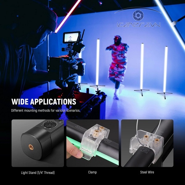 NEEWER TL120C khi được điều khiển bằng 2.4G hoặc NEEWER APP, TL120C có thể kết nối với NEEWER TL60/BH30S/CB300/CB300B/CB200/CB200B/FS150/FS150B/FS230 và các đèn video LED khác để tạo hiệu ứng ánh sáng nâng cao, hoàn hảo cho quảng cáo, làm phim, sản xuất truyền hình , video ca nhạc, v.v. Bạn có thể gắn nó trên Đế đèn CTN5 hoặc kết nối nó với bảng điều khiển DMX bằng Bộ cáp NC005/NC006 RJ45 đến XLR