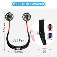- Quạt đeo cổ chữ U tích hợp pin sạc liền thân quạn và có thể sạc lại bằng dây sạc micro USB đi kèm bộ, tăng hiệu suất và thời gian sử dụng quạt