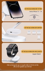 • Sạc không dây 3 trong 1: Hỗ trợ sạc không dây từ tính và đáp ứng yêu cầu sạc không dây của iPhone, tai nghe Apple, Apple Watch và các thiết bị khác.