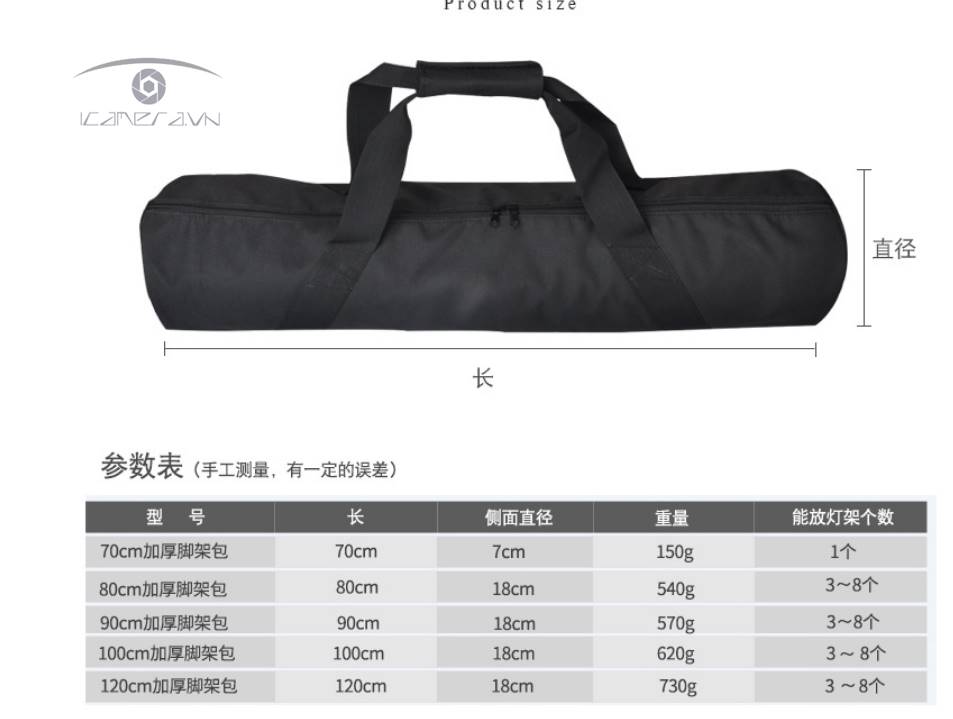 Túi đựng này có độ dày thích hợp với các loại chân máy và chân đèn phổ thông nhất.