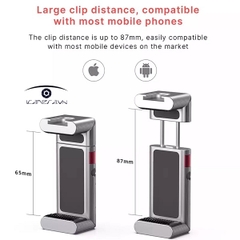 Khoảng cách kẹp lớn, tương thích với hầu hết các điện thoại di động,khoảng cách kẹp lên đến 87mm, dễ dàng tương thích với hầu hết các thiết bị di động trên thị trường