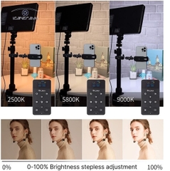 Đèn chính sử dụng 192 hạt ánh sáng có độ sáng cao, cung cấp độ sáng cao hơn và dải nhiệt độ màu rộng hơn. 2500K-9000K, điều chỉnh vô cấp độ sáng 0-100%