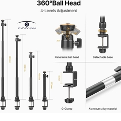 Chân đế để bàn có 4 mức độ mở rộng, từ 11,8 inch đến 31,5 inch, cho bạn nhiều lựa chọn hơn; Đầu bi xoay 360 độ có khả năng lựa chọn góc độ lý tưởng mà bạn muốn