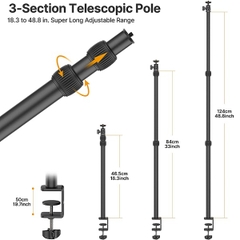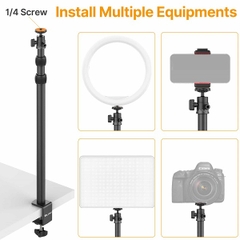Chân đế để kẹp bàn đa năng, chiều cao có thể tuỳ chỉnh từ 46.5cm - 84cm - 124cm. Phần kẹp có thể kẹp vào bàn có độ dày từ 0.5inch-1.8inch