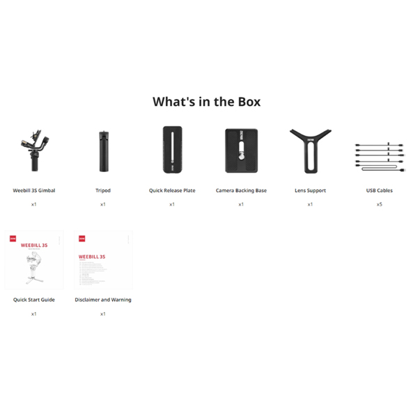 Với hiệu suất mạnh mẽ, Weebill 3S tương thích với hầu hết các máy ảnh DSLR và mirrorless trên thị trường, cũng như ống kính phổ biến như Nikon Z7II+24-70mm F4; Sony A7M3+FE 24-105mm; Fujifilm X-T3+XF 16-55mm F2.8, v.v. Giải phóng toàn bộ tiềm năng của máy ảnh của bạn chưa bao giờ dễ dàng như vậy.