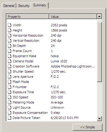 Thông tin EXIF về bức hình của Joe Belfiore cho thấy ảnh chụp từ Nokia Lumia 1020.