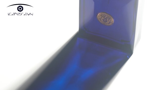 Đặt nắp Forza 60 được bọc bằng giấy lọc màu xanh ngay phía sau nước hoa để chiếu sáng xuống một góc 45 độ trên nước hoa. Đèn Pavotube được đặt sang một bên làm ánh sáng nền với tấm vải trắng ở mỗi bên để tạo cảm giác về kết cấu kim loại.