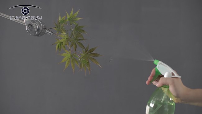 Một cách chụp khác cho lá, phun một ít nước lên lá để mô phỏng những chiếc lá sau mưa, sau đó lắp một chiếc gương bên cạnh ống kính để làm cho những giọt nước lấp lánh.