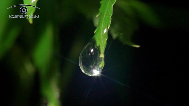 Sử dụng ống kính siêu nhỏ với ánh sáng chuyển động, những giọt nước trên cánh hoa trông lấp lánh như kim cương phản chiếu.