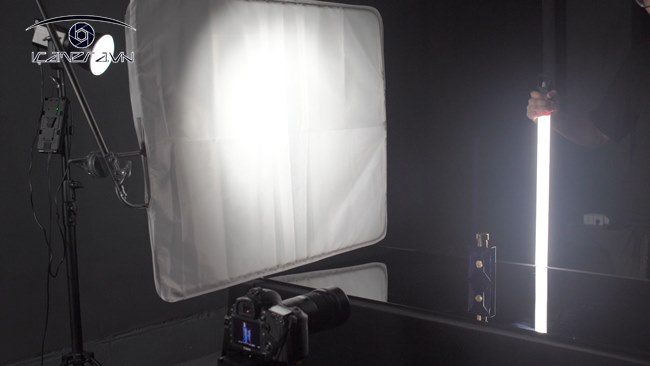Có hai cách sử dụng Pavotube làm nguồn sáng di chuyển, một trong số đó là giữ Pavotube song song với bàn phía trên nước hoa và di chuyển theo chiều ngang trong khi cách còn lại là sử dụng Pavotube làm đèn nền di chuyển với Forza 60 được đặt bên để cung cấp một ánh sáng mềm mại qua tấm softbox