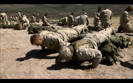 Hít đất là bài thể dục không thể thiếu đối với các học viên, vốn là lính thủy đánh bộ.