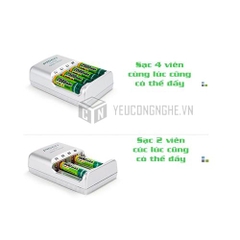 Bạn có thể sạc 1-4 viên Pin AA hoặc 1-2 viên Pin AA một cách dễ dàng nhanh chóng (Lưu ý: Chỉ được sạc cùng lúc 1 loại Pin)