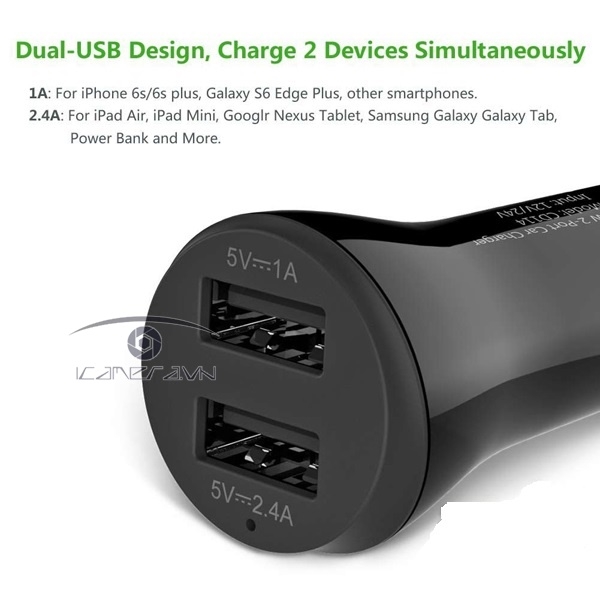 – Sạc trên ô tô UGREEN 20392 (17W 3.4A) gồm 2 cổng USB 1A và 2.4A có thể giữ cho các thiết bị cầm tay của bạn mở điện, nó có thiết kế cổng kép, cho phép sạc hai thiết bị cùng một lúc (tổng sản lượng hiện tại 3.4A).
