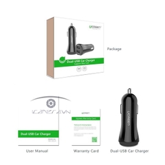 Sạc trên ô tô UGREEN 20392 (17W 3.4A) gồm 2 cổng USB 1A và 2.4A