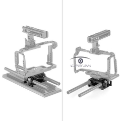 Hệ thống tấm đế này có ren ba chân 1/4"-20 và 3/8"-16 và khóa đòn bẩy ngón tay cái. Kẹp thanh 15 mm tích hợp cho phép bạn gắn tấm đế trên hệ thống thanh LWS 15 mm tiêu chuẩn hoặc bạn có thể sử dụng ren gắn để gắn các tấm khác nhau ở phía dưới. Ngoài ra còn có một giá treo khớp nối kiểu ARRI tiêu chuẩn ở phía dưới cho một phương pháp lắp thay thế.