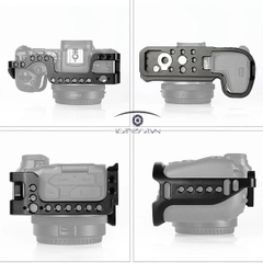 SmallRig Cage dành cho Canon EOS RP CCC2332 là một lồng đầy đủ có hình thức phù hợp. Nó gắn vào ổ cắm chân máy của máy ảnh bằng vít 1/4 “-20, với chốt định vị và đệm cao su trên tấm đế để ngăn xoắn. Nó đi kèm với nhiều ren 1/4” -20 và 3/8 “-16 các lỗ cho phép gắn các phụ kiện