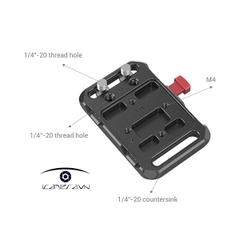 Nó có hai liên kết đếm 1 / 4-20 ", hai lỗ ren 1 / 4-20" và bốn lỗ ren M4, có thể được sử dụng để gắn một kẹp thanh kép, một magic armhoặc các phụ kiện khác, sẽ giúp gắn một V gắn pin vào giàn máy ảnh của bạn nếu cần.