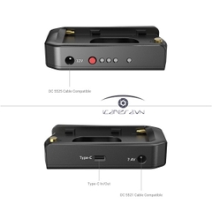 Ở bên cạnh có đầu ra DC 8V và 12V và một cổng Type-C có thể xuất ra dòng điện hoặc sạc pin NP-F. Tất cả các cổng đều được thiết kế với lớp bảo vệ ngắn mạch để tránh làm hỏng máy ảnh. Ngoài ra, nó còn có đèn LED báo hiệu kết nối pin và thời lượng pin.