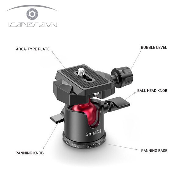 - Ball head có núm cho phép điều chỉnh nhiều góc độ