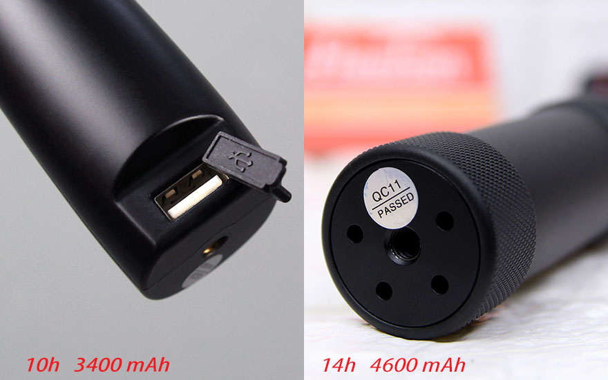 - Với 3400mAh smooth Q có thể dùng được liên tục trong 10-12h, cổng microUSB giúp bạn dễ dàng sạc lại cho chiếc tay cầm chống rung này thông qua nguồn điện trực tiếp hoặc pin sạc dự phòng. Một cổng USB ở phía sau đuôi dùng sạc pin cho điện thoại khi cần, điểm này phải nói là cực kì tâm lí và hữu ích.
