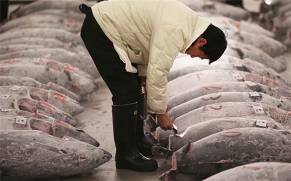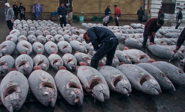 Có 3 khu chợ chính, trong đó nổi tiếng nhất là chợ Tsukiji có bán cá ngừ vây xanh lớn nhất. Tại đây, người ta sẽ đấu giá cá ngừ. Thịt cá ngừ được chia làm ba loại, lưng, lườn và bụng. Những miếng sushi làm từ thịt bụng bao giờ cũng có giá đắt nhất, một suất sushi cá ngừ có thể lên đến 375 đô la. The Independent, mỗi năm, người Nhật tiêu thụ khoảng 3/4 lượng cá ngừ vây xanh trên thế giới và 80% lượng cá ngừ đánh bắt từ Địa Trung Hải.