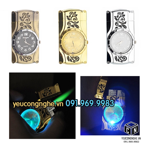 Đồng hồ bật lửa đèn led kim loại hoa văn