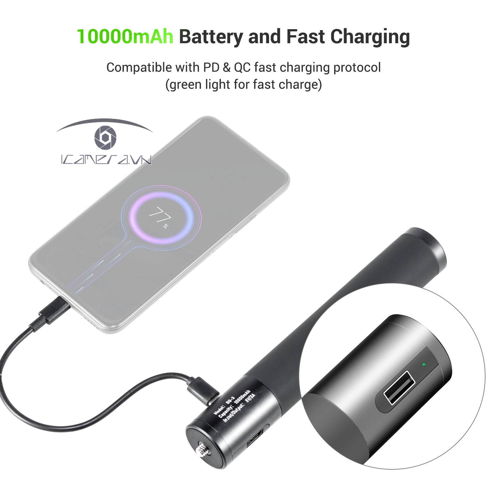 Ulanzi BG-3 với dung lượng pin lên đến 10000mAh Pin , hỗ trợ sạc nhanh và phủ silicon báng cầm thoải mái hơn , cung cấp tới 2 port USB ,và Type-C PD 18W cho bạn sạc đồng thời 2 sản phẩm cùng 1 lúc vô cùng tiện lợi.