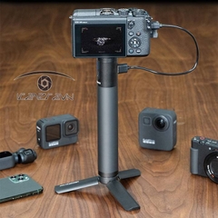 -Đầu nối ốc 1/4 để gắn máy ảnh, gimbal, v. v., cộng với 1/4 ở dưới cho chân máy mini ba chân (đi kèm),