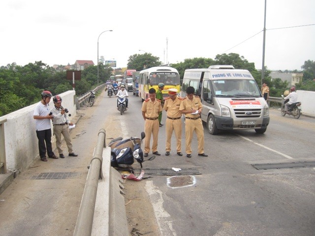 Đang điều khiển xe máy đến đầu cầu chưa kịp chuyển là đường người phụ nữ đã tông xe thẳng vào giải phân cách trên cầu và ngã lăn ra đường