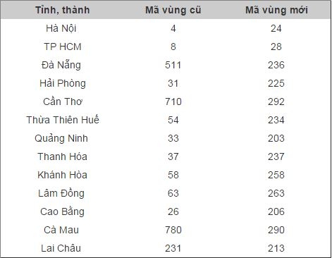 Một số tỉnh, thành vẫn được giữ nguyên mã vùng gồm Phú Thọ (210), Vĩnh Phúc (211), Hòa Bình (218), Hà Giang (219). Thông tư này có hiệu lực thi hành kể từ ngày 1/3.
