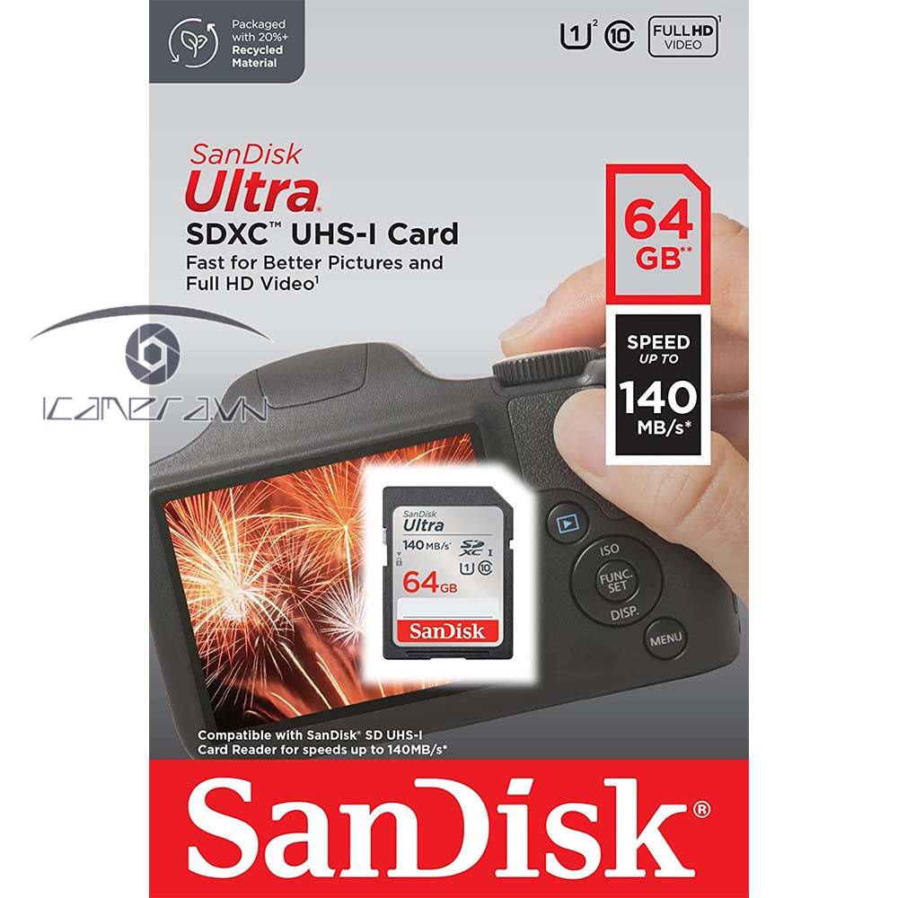 Thẻ nhớ SDXC Sandisk Ultra 64GB tốc độ 140MB/s UHS-I