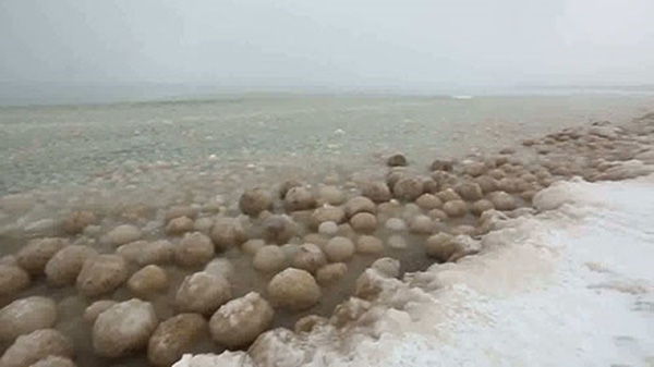 Được biết, nguyên nhân của hiện tượng này là do khi nhiệt độ giảm xuống ở mức nhất định, tại gần bờ hồ sẽ xuất hiện những tinh thể bằng băng rất nhỏ. Dần dần, nhờ những con sóng, chúng được bồi thêm nhiều lớp, và từ đó tạo nên một biển những quả bóng băng trên mặt nước.