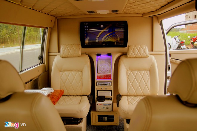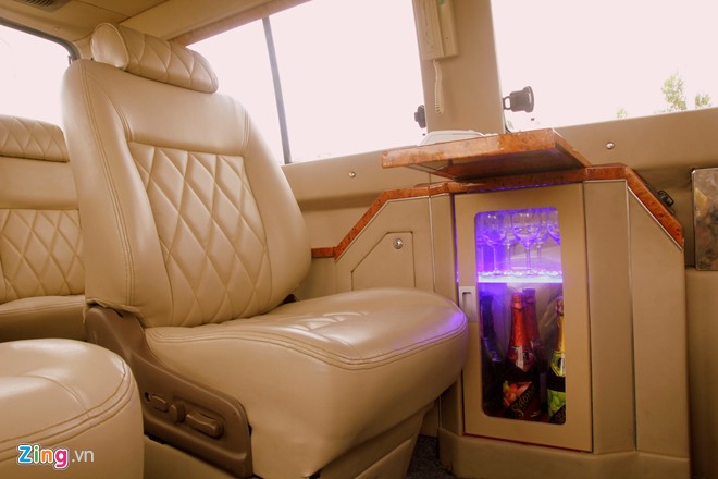 Xe được lắp đặt tủ rượu, bàn làm việc tương tự trên những xe limousine cao cấp.