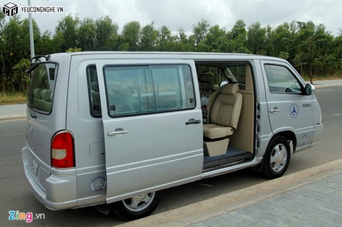 Mercedes MB100 là chiếc minibus 9 chỗ ngồi được sản xuất bởi hãng xe Đức. Anh Ngô Ngọc Trung, một người thợ mỹ thuật tại TP HCM mua với giá 250 triệu và độ lại thành chiếc limousine.