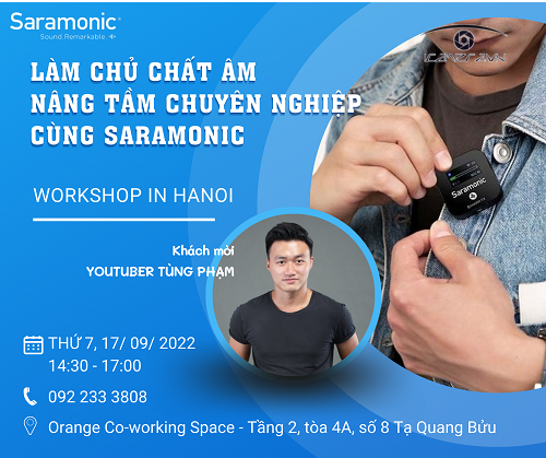 Thành phố Hà Nội, ngày 17 tháng 9 năm 2022, thương hiệu Saramonic – giải pháp thu âm chuyên nghiệp đồng hành cùng đơn vị iCamera.vn tổ chức Workshop “Làm chủ chất âm – Nâng tầm chuyên nghiệp cùng Saramonic”. Với sứ mệnh lan tỏa sự sáng tạo, Saramonic là thương hiệu sản xuất và phân phối các thiết bị âm thanh chuyên nghiệp. Buổi workshop không chỉ chia sẻ những kiến thức về thu âm trong quá trình sáng tạo nội dung từ diễn giả Tùng Phạm mà còn là sự kiện chính thức ra mắt sản phẩm micro thu âm không dây Blink900 B2 tại Việt Nam. Đây được coi là sản phẩm thu âm đột phá nhất của Saramonic hiện nay.