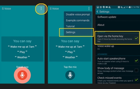 Để thực hiện, kích đúp vào nút Home để kích hoạt S Voice, sau đó chạm vào dấu ba chấm trong góc trên bên phải và bấm cài đặt. Sau đó, tất cả những gì bạn cần làm là bỏ chọn trong mục “Open via the home key”.