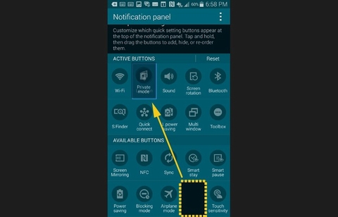 Cho đến nay, chức năng này chỉ dành cho chủ nhân của điện thoại Galaxy S5, vì chúng là thiết bị Samsung đầu tiên có chế độ Private Mode. Chế độ này cho phép bạn bảo vệ một số hình ảnh và các tập tin khác tránh khỏi những con mắt tò mò. Bạn sẽ có thể xem những tập tin này trong chế độ riêng tư, nhưng một khi đã tắt, không ai khác sẽ có thể truy cập vào chúng.