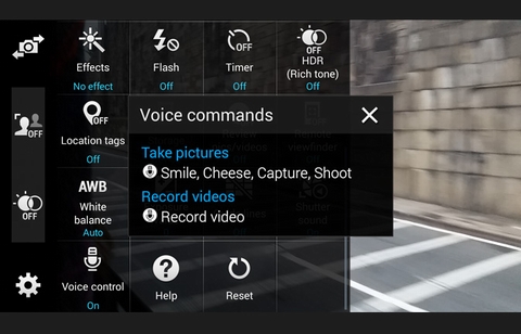 Nếu bạn không muốn mất nhiều thời gian hoặc chỉ là muốn loại bỏ độ rung lắc khi cầm tay bấm chụp, thì có thể sử dụng chức năng điều khiển bằng giọng nói để chụp ảnh. Với chức năng này, người dùng cho thể ra lệnh cho máy chụp ảnh hoặc chỉ cần nói “Record video” để quay video.