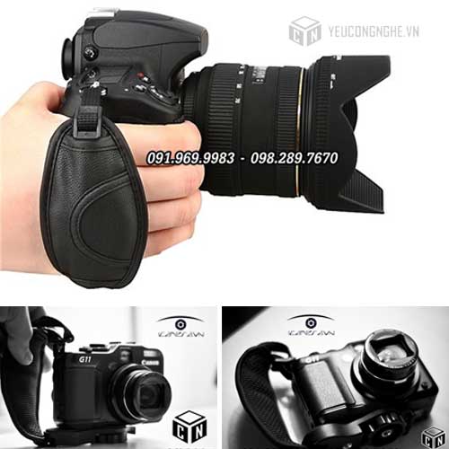 Đơn giản và gọn nhẹ là những từ chính xác nhất để miêu tả chiếc dây đeo dạng móc tay vào máy ảnh. Với chiếc dây này, bạn không đeo máy ảnh lên vai mà trực tiếp đeo vào cổ tay, điều này giúp thao tác với máy nhanh và cực linh hoạt. Nhưng tất nhiên, khi bạn muốn rảnh tay thì chiếc dây này lại không thích hợp. Tuy nhiên bù lại, dây có thiết kế miếng đệm cao su rất êm tay khi sử dụng.