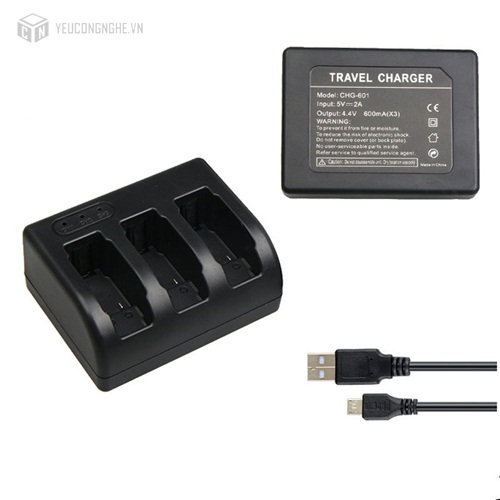 Sạc pin 3 trong 1 giúp người dùng tiết kiệm tối đa thời gian sạc pin, luôn có đầy đủ pin dự trữ để việc quay chụp và khám phá không bị gián đoạn. Sạc thiết kế để có thể cùng lúc sạc 3 pin, đồng thời có đèn led báo sạc tiện dụng.