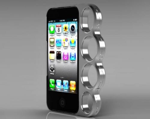 Biến smartphone thành loại vũ khí tự vệ đơn giản, Brass Knuckles làm bằng kim loại không gỉ bao bọc quanh thân máy. Bên cạnh đó, bạn còn nhìn thấy 4 chiếc lỗ tròn để xỏ ngón tay, giúp việc cầm nắm dễ dàng và chắc chắn hơn.