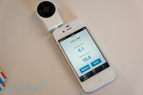 Đây là sản phẩm hữu ích cho người đam mê thể thao. Bạn chỉ việc cắm thiết bị vào giắc tai nghe và đưa iPhone ra trước gió. Dựa vào chuyển động của cánh quạt, phần mềm đi kèm sẽ xác định tốc độ gió và hiển thị lên bản đồ. Ý tưởng của công ty phát triển Shaka rất đơn giản nhưng lại vô cùng hiệu quả.