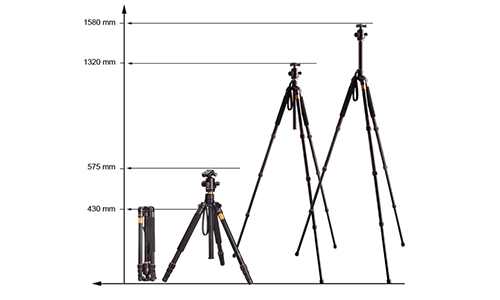 Chân máy có thể điều chỉnh 4 mức khác nhau. Chiều cao có thể thay đổi từ 65cm đến 206cm