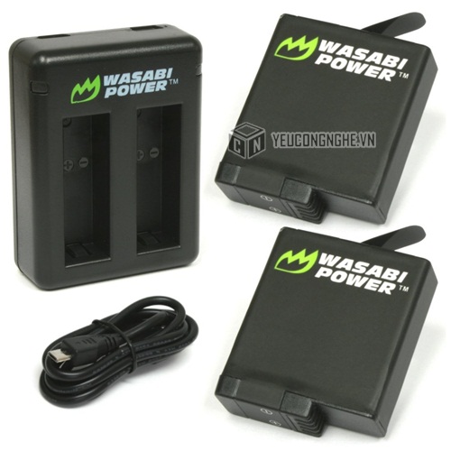 Pin sạc cho Gopro hero 6 black Wasabi bộ 2 pin 1 sạc đôi